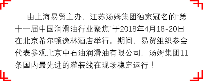 江蘇湯姆集團獨家冠名的中國潤滑油行業聚焦圓滿結束!