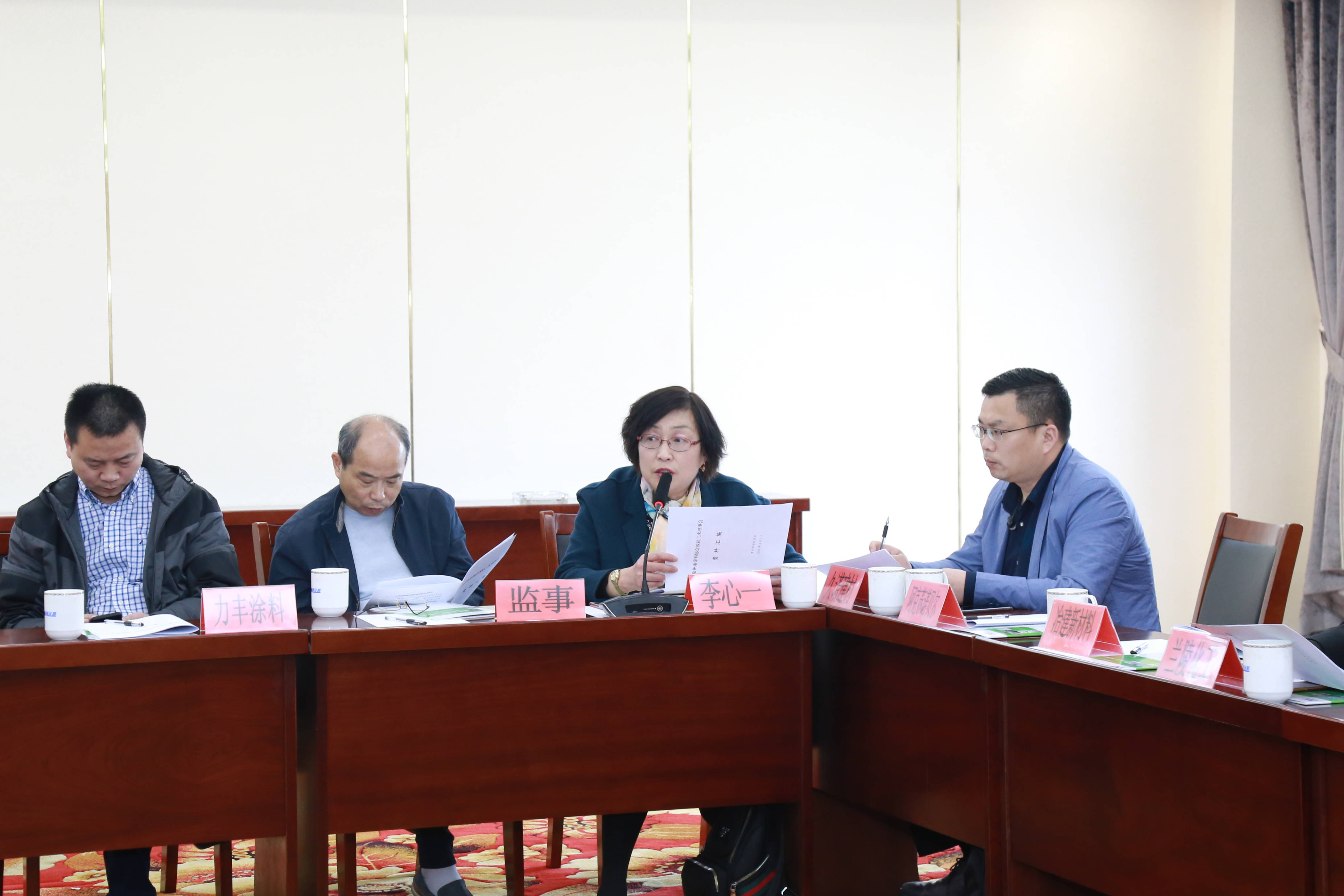 隨后,常州市涂料協會秘書長呂映女士宣讀了此次會議議程,并由常州市涂料協會副秘書長李心一女士副詳細闡述了需審議的各項議案:《2019年度常州市涂料協會工作計劃草案 》、《2019北京化工大學先進材料科技成果對接會》方案、《第17屆環保車用涂料與涂裝年會(2019)》方案、《組織企業赴外地化工園區考察》議案、《組織企業赴浙江考察交流活動》議案、《經濟形勢研判及創新金融模式-沙龍》議案、《組團參觀“第二十四屆中國國際涂料、油墨及粘合劑展覽會”》議案、《關于會長與理事變更的申請》。同時,李心一女士對各個活動方案進行了詳實的分析與實施計劃的部署。此次會議是參會理事單位一個交流經驗、展示成果、共謀發展的平臺,常州市涂料協會秘書長呂映女士鼓勵各理事單位積極參與并支持。