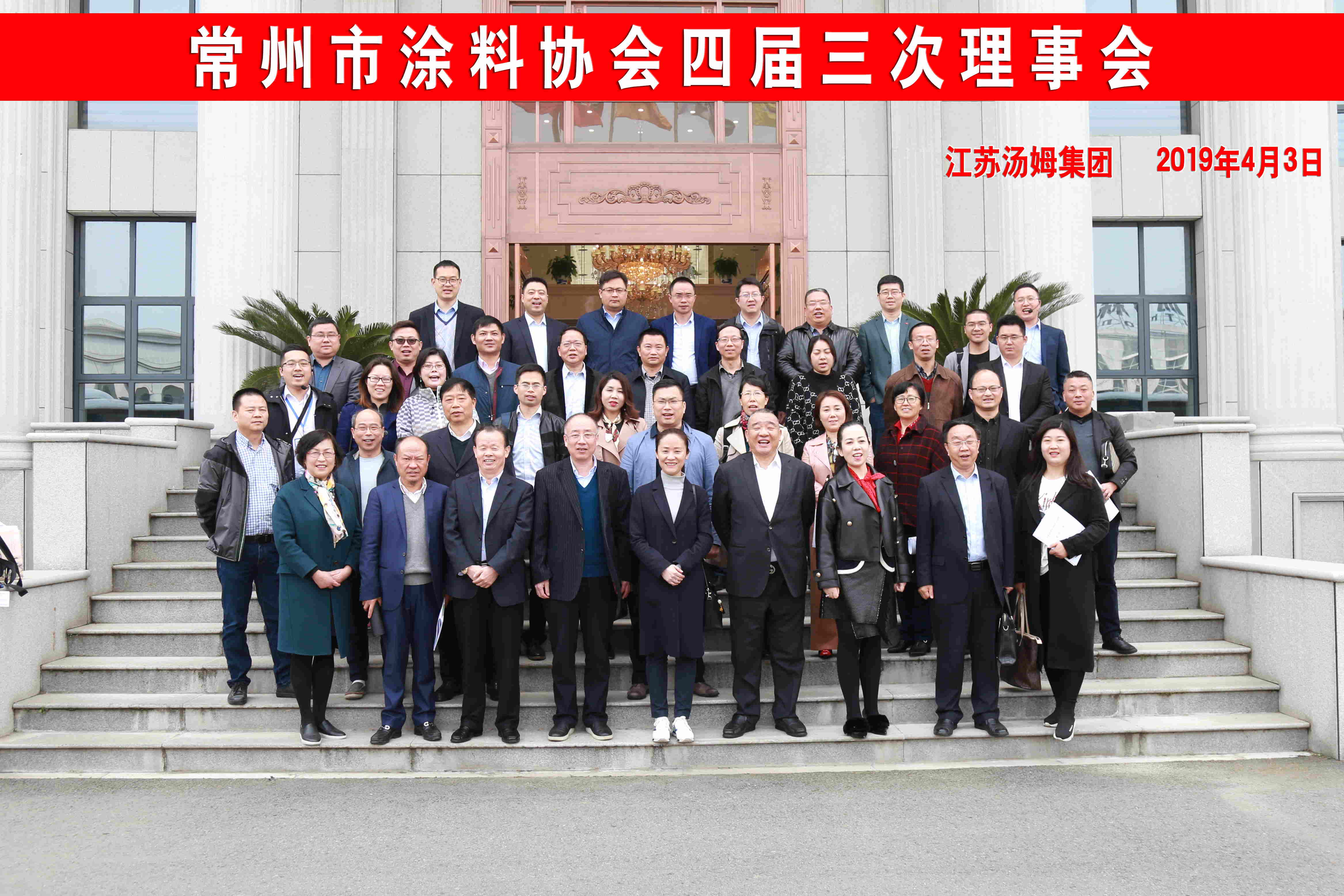 2019年4月3日,常州市涂料協會四屆三次理事會工作會議在江蘇湯姆集團會議室成功召開,常州市涂料協會秘書長呂映女士、副秘書長李心一女士、 江蘇湯姆集團董事長湯建華先生及30多家理事單位出席了會議。