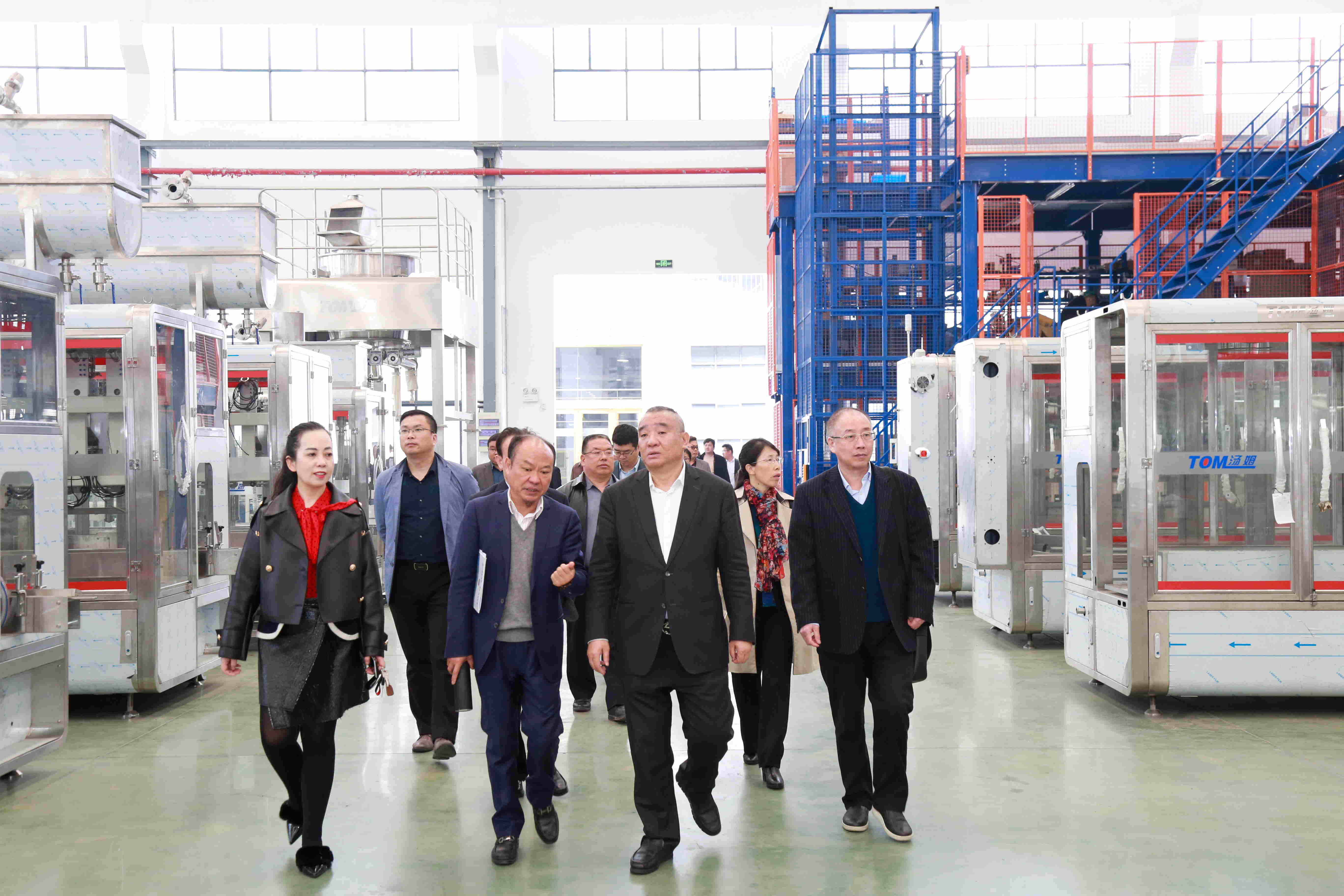 會議結束后,江蘇湯姆集團董事長湯建華先生、江蘇湯姆森智能裝備有限公司總經理王芳熱情地邀請了與會代表參觀了公司的生產車間與展館。在集團董事長湯建華先生、江蘇湯姆森智能裝備有限公司總經理王芳女士、副總裁湯建定先生及涂料事業部總經理汪亮亮先生的陪同講解下,與會代表們了解了江蘇湯姆的建立、起步、發展壯大的建設歷程,紛紛感嘆于江蘇湯姆集團的發展速度!