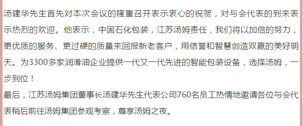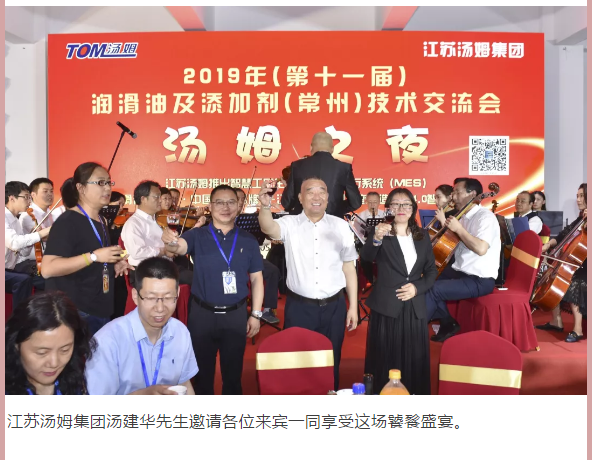 江蘇湯姆集團(tuán)熱烈祝賀2019年(第十一屆)潤(rùn)滑油及添加劑(常州)技術(shù)交流會(huì)隆重召開(kāi)。湯姆之夜,群情激昂
