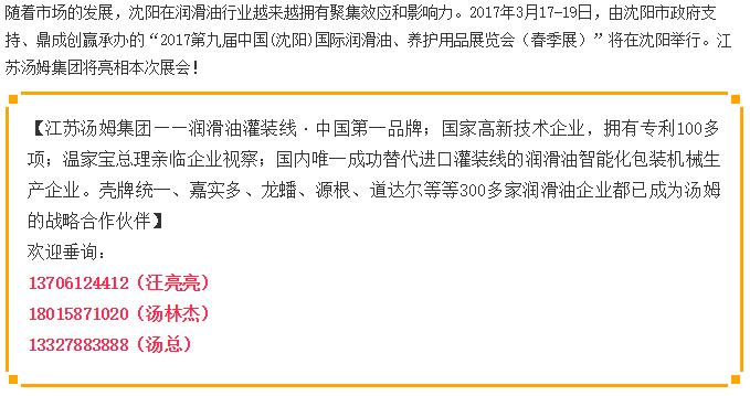 【展會(huì)信息】江蘇湯姆集團(tuán)亮相沈陽國際潤滑油展,歡迎新老客戶光臨!