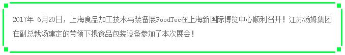 【展會】江蘇湯姆集團亮相2017·上海食品加工技術與裝備展,并取得豐碩成果!